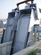 在目前水處理過程中,用于清除固體懸浮物的大型粗格柵設備主要有高鏈式格柵除污機、傳統的鋼絲繩牽引式格柵除污機等。這些設備運行中易將雜質攪渾,清除不徹底,且細碎雜質易從格柵中跑漏,或容易纏繞在格柵上堵塞柵隙。碰到木塊竹竿樹枝等硬物,容易將設備卡死或損壞設備,而鋼絲繩牽引式格柵除污機還可能出現亂繩情況。因此分離效果差,效率低,運轉不正常。